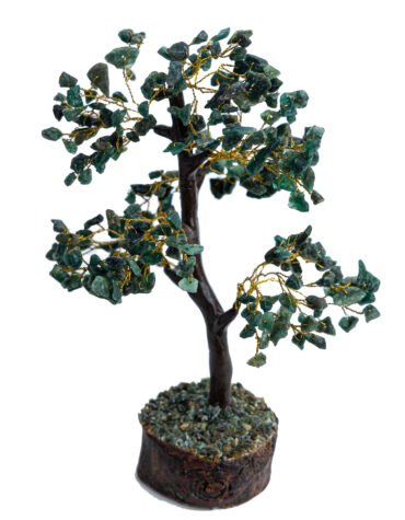 Crystal Handcrafted Feng Shui Gemstone Tree on Wooden Base (Green)