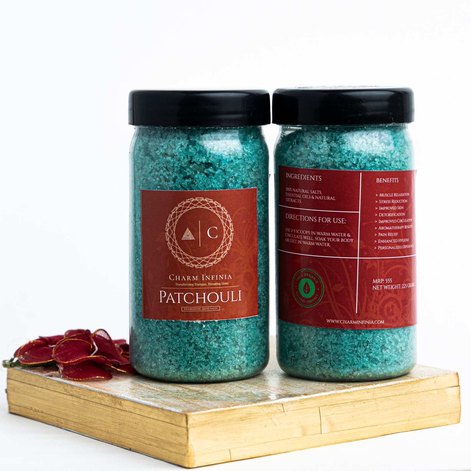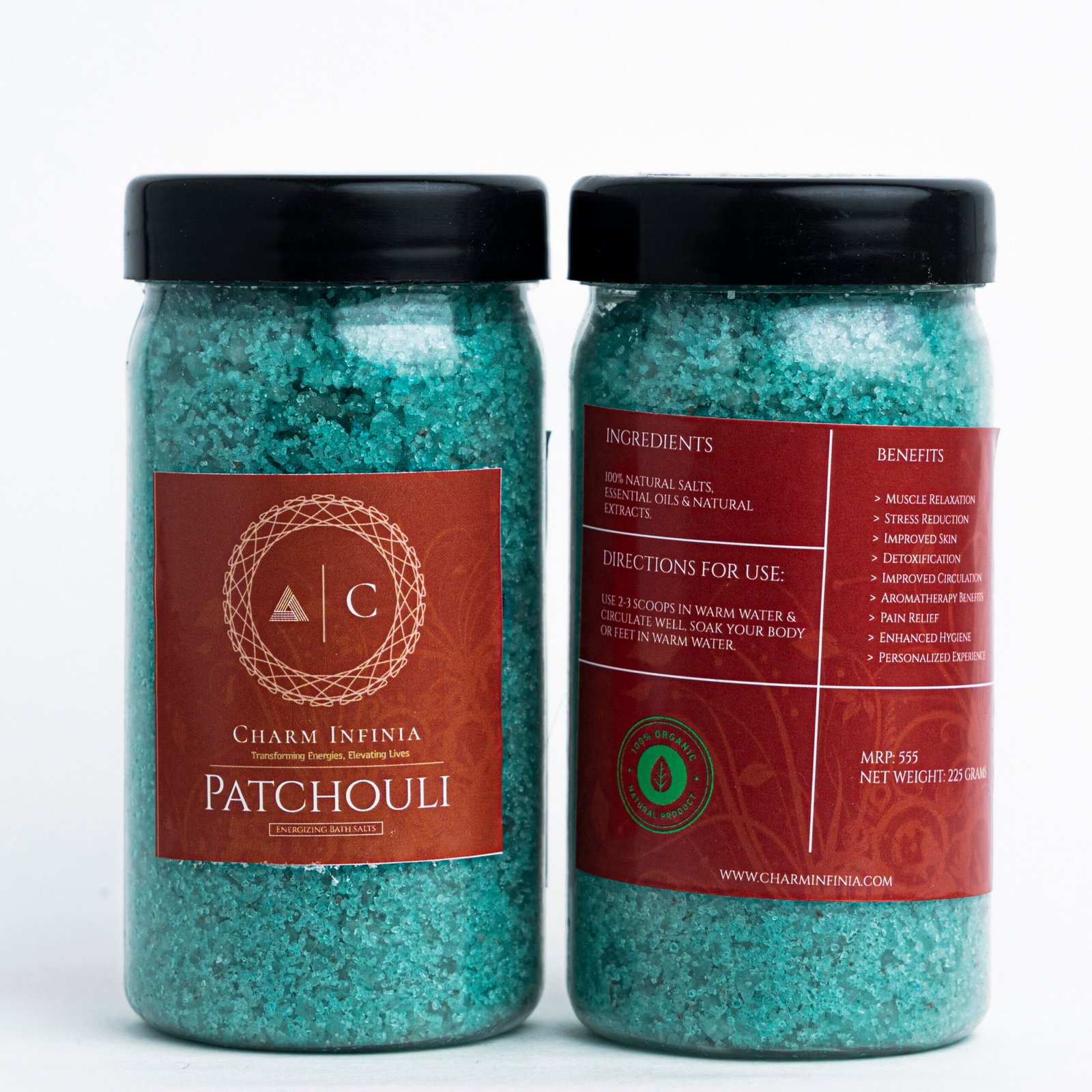 Find your calm with Charm Infinia Patchouli Bath Salt. Our mineral-rich blend of Epsom salt and Himalayan pink salt melts into warm water to relax tired feet and sore muscles while the earthy patchouli aroma helps you unwind. The fast-dissolving crystals leave skin feeling smoother and refreshed—perfect for a quick spa-at-home ritual or a mindful evening soak.