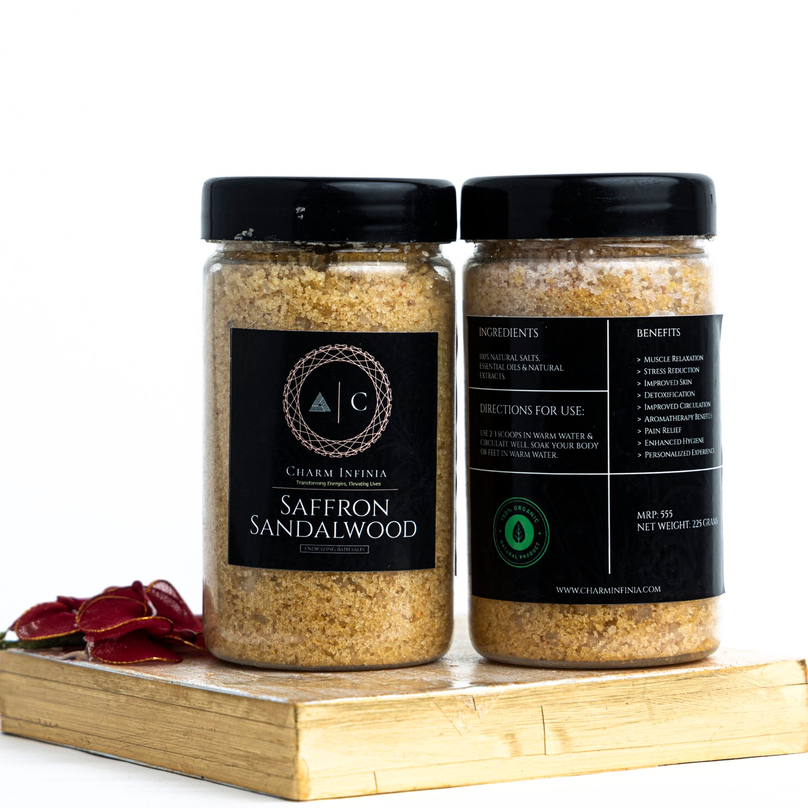 Charm Infinia Saffron & Sandalwood Bath Salt brings the magic of a spa right into your home. Infused with the rich goodness of saffron and sandalwood, this premium soak helps relax the body, cleanse the skin, and restore mental clarity. Its gentle, chemical-free formula works wonders on tired muscles, clogged pores, and dull skin.