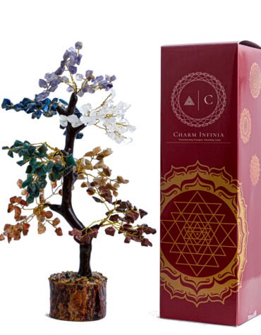 CHARM INFINIA 300 Beads Seven Chakra Crystal Tree with Wooden Bark & Base – Handmade Chakra Healing Tree for Balance Energy and Home Décor (300, Multicolor)